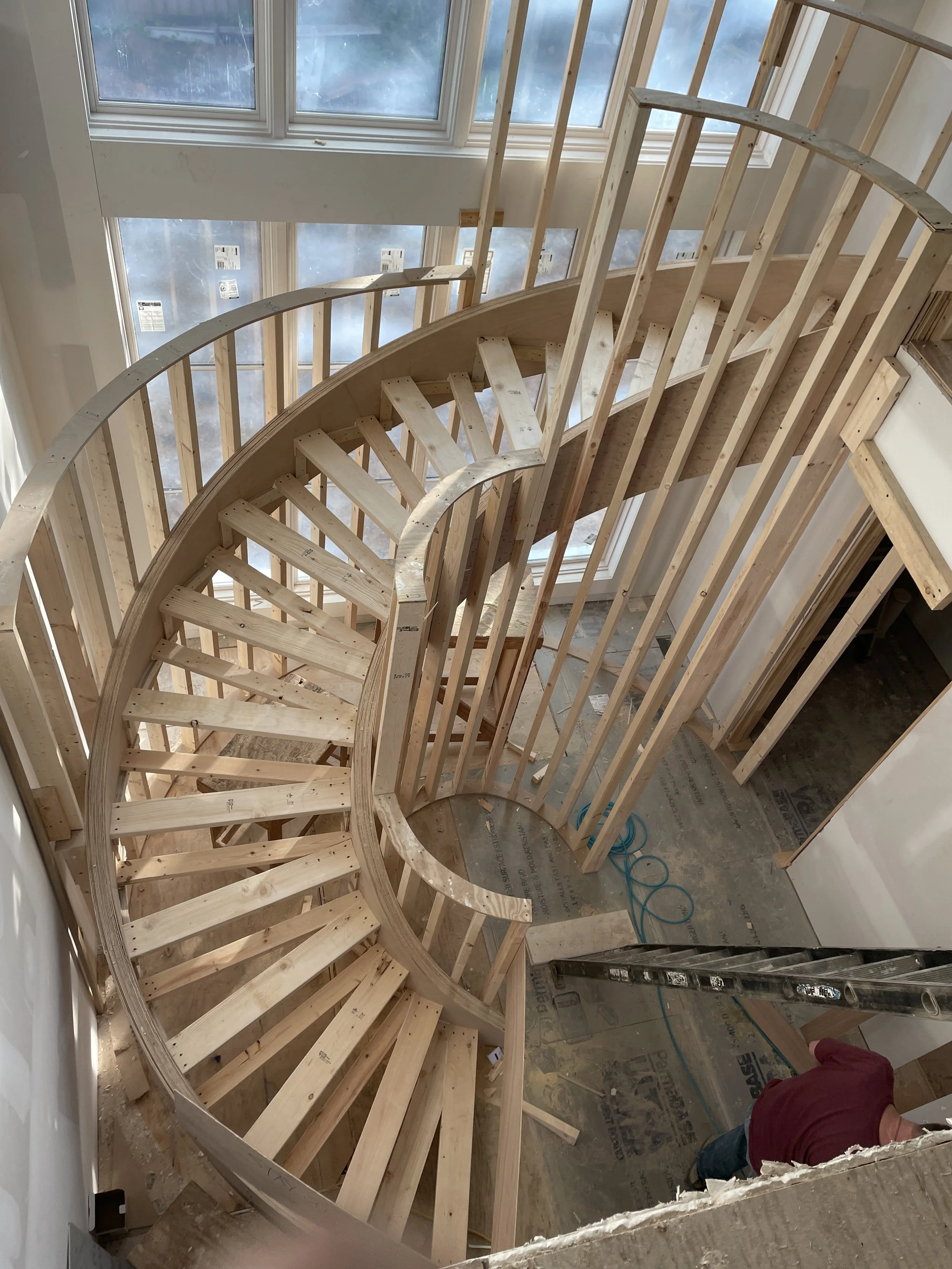 We are a team of professional quality-focused turn-key stair artists, designers, and building company out of Ashville, AL . Stair Gurus LLC was established in 2022 by J. Trent Vines, our owner, who has been in the stair business exclusively for over 25 years specializing in custom and highly complex residential and commercial projects that called for special attention to detail that not just anyone with knowledge of stair building can offer you. He has been in the stair business since he was 14 years old and still in high school. With that experience, dedication to his craft, and the business contacts made along the way, when the opportunity presented itself in early 2022, Stair Gurus LLC was born. We build all of our radius and helical stair systems on-site from the rough framing stage all the way through the finish to ensure a high quality finish product free of defect. We do offer finish and painting services upon request, but we typically see the project from the framing stage up until it’s ready to be finished and the contracted painters typically finish our work on most projects, but we do offer that service when called for. We live by a mantra that upholds excellence in our products, character, and way of life as we subscribe to the theory that all life on the planet is of the same consciousness and our fellow humans, plants, etc. should be treated with the same respect that we desire. Mr. Vines is a very spiritually sound individual and takes a great deal of joy practicing his spirituality and oneness with the earth and it has spilled over into his business with great success. We believe that being cruel to your neighbor is no different than being cruel to yourself and that all people deserve respect, kindness, and happiness. We also believe in being fair and transparent with our customers and always keeping our prices within reason. However, given the quality of our stair systems, we are usually not the cheapest option, but quality costs money and we will ensure that you receive the best job possible when we are hired to create a masterpiece for your home! Our pricing typically doesn’t compare with what you would be getting from our competitors in the same installations. We don’t settle and don’t expect you too either! We source most of our parts from the Amish in OH due to the consistent quality of the products we buy from them. Most stair companies now are making production stair parts as cheaply as the possibly can, using poplar cores in oak handrails and using finger jointed handrails as stain grade and we don’t believe that’s acceptable on something we put our effort and intention into creating. We believe this looks very unappealing in the focal point of your home. We wouldn’t put it in our own homes and definitely won’t put it in yours for that reason. We make sure each project is completely and satisfactorily aesthetically pleasing to our customers before we start the construction process. We will do the extra work necessary to ensure that it is. It is our goal to give you a stress-free, and worry-free experience when you choose us to create a unique focal point in your home.